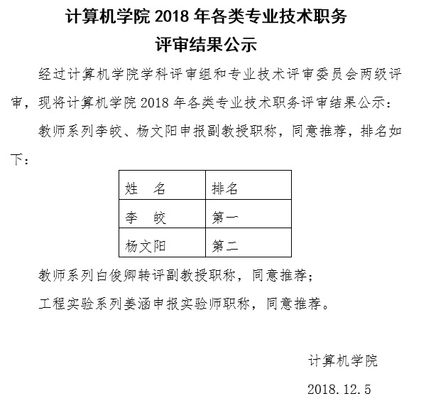 2024白菜网址官网大全2018年各类专业技术职务评审结果公示