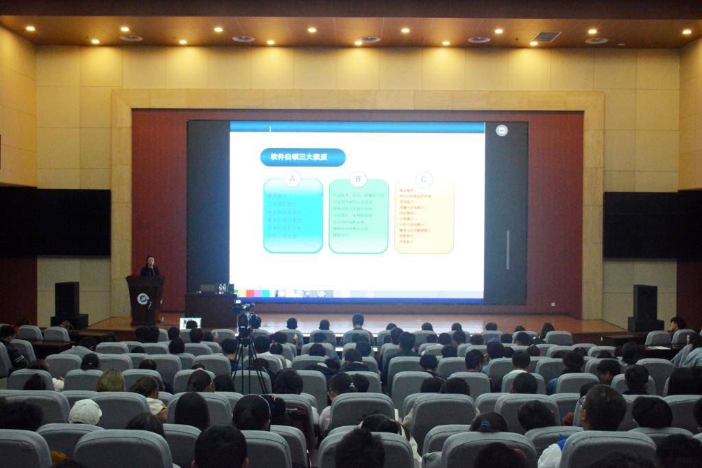王莺老师首先以21世纪社会的人才需求作为切入点,强调了计算机行业的从业人员对当前社会所产生的巨大影响。随后,王莺老师通过分析白菜官网计算机类专业的课程设置,详细向学生阐述了计算机行业从业者所需要具备的基本能力以及未来的职业素质养成和愿景规划。最后,王莺老师站在一名企业管理者的角度,向同学们说明了当前的计算机企业需要的人才应具备的个人品质和职业素养,告诫同学们在大学的四年学习生活中,不能仅局限在课程的学习中,一定要参与到一个完整的项目中去,熟悉项目流程,理解工程思想,才能更好的掌握所学技术的实际应用。